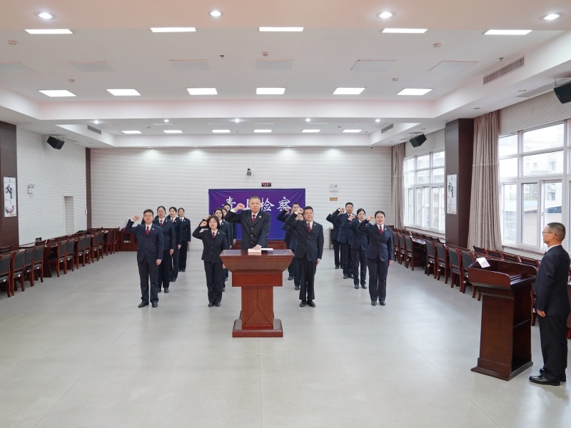 宣誓仪式由党组成员、副检察长李文刚监誓,检委会专职委员刘勇领誓,党组成员、政治部主任张瑞主持。仪式在庄严的国歌声中拉开帷幕,宣誓人员精神饱满,高举右拳,齐声诵读誓词:“我宣誓:忠于中华人民共和国宪法,维护宪法权威,履行法定职责,忠于祖国、忠于人民,恪尽职守,廉洁奉公,接受人民监督,为建设富强民主文明和谐美丽的社会主义现代化强国努力奋斗!”胸前检徽熠熠,心中誓言铮铮,既是宣誓人对宪法作出的庄严承诺,也彰显出检察干警们捍卫公平正义的坚定决心。
