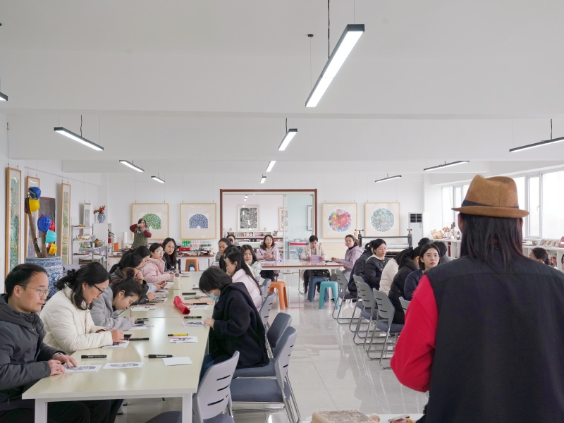 参观结束后,干警们走进创作区域,亲身动手体验版画的学习与制作。傅院长细致讲解青山工业版画的发展历程、表现形式与灵感来源,手把手指导大家掌握创作技巧。平日里坚守检察一线的干警们,化身专注的非遗体验者,全心投入其中:绘图、雕刻、上墨、拓印,每一个步骤都凝神专注、巧手匠心、精准到位。这份细致,恰似办案时审查证据的严谨审慎;这份专注,一如起草文书时的精雕细琢,刀笔流转间尽展古韵,心底坚守处皆为法治。